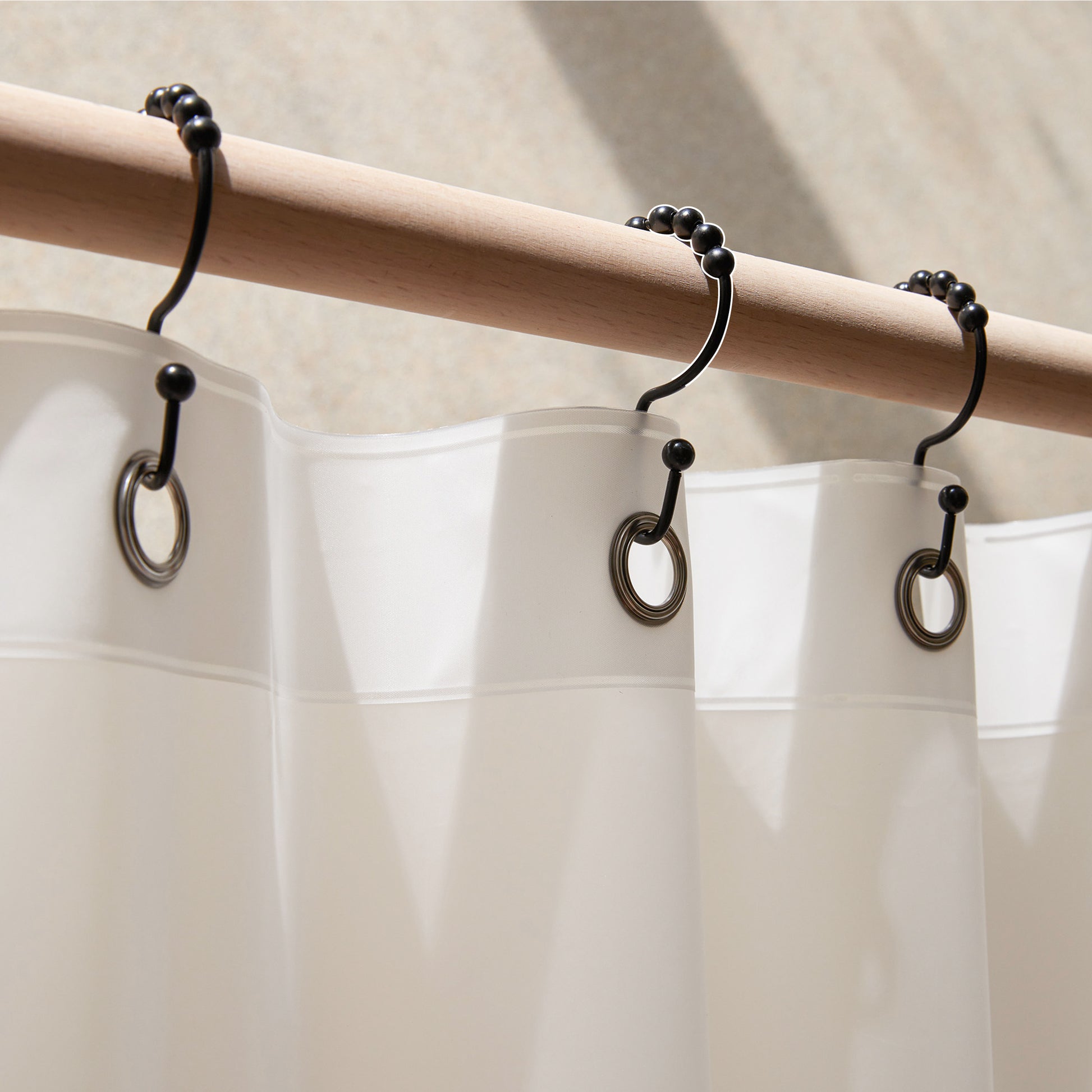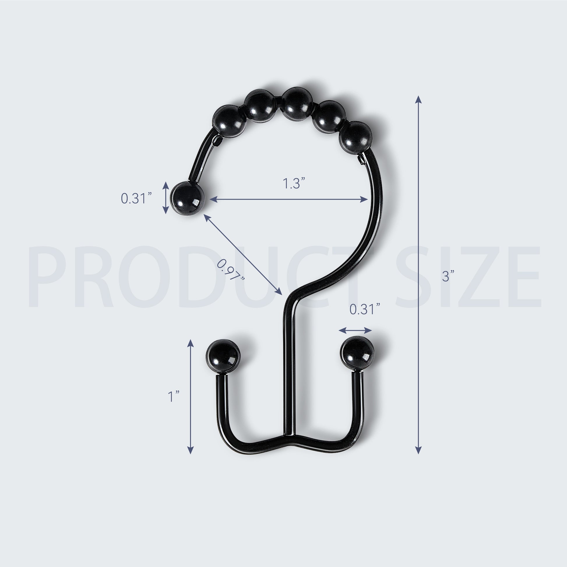 The smooth rolling balls ensure effortless gliding along the shower rod, even with heavy curtains. Each set includes 12 hooks, each measuring 3 inches in length, suitable for rods up to 1 inch in diameter.